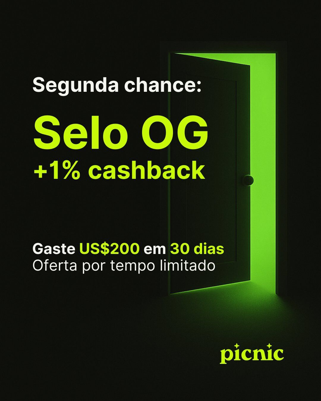 Perdeu a primeira rodada? Relaxa: o selo OG voltou.E é tão simples:💸 Gaste US$200 em 30 dias e ganhe +1% de cashback vitalício.