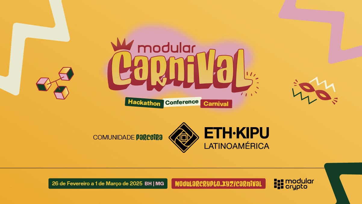🌎 Estamos nos preparando para o Modular Carnival 2025, onde a tecnologia se encontra com a vibrante cultura do Carnaval Brasileiro! Este evento, que será realizado em Belo Horizonte, promete ser uma experiência inesquecível, e estamos entusiasmados em anunciar nossa parceria com a ETHKIPU, uma organização que conecta pessoas e ideias para impulsionar a transformação digital na América Latina, inspirada pela herança das culturas latino-americanas e pelo poder do Ethereum.