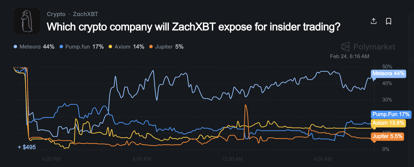 Última atualização: Quase US$ 3 milhões em apostas foram direcionados para um contrato da @Polymarket sobre qual empresa cripto o @ZachXBT irá acusar de insider trading em seu relatório de 26 de fevereiro.