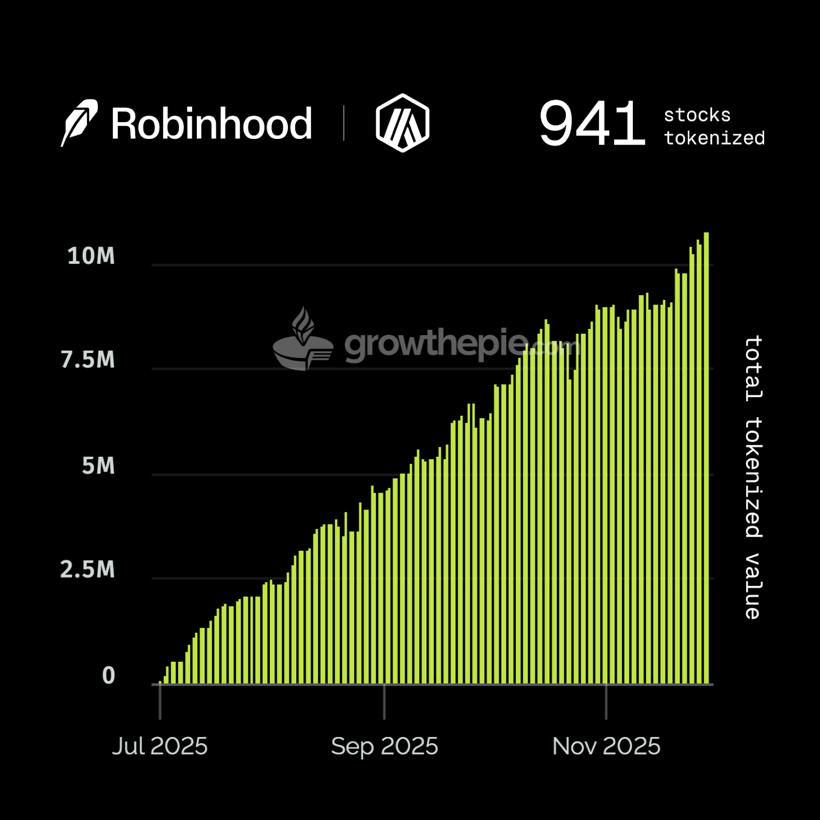 A Robinhood é hoje o caso mais forte de adoção institucional na Arbitrum. O produto lançado em junho de 2025 atingiu um novo marco: 941 ativos tokenizados na Arbitrum One, consolidando-se como a maior operação de tokenização de ações para o varejo em qualquer blockchain.
