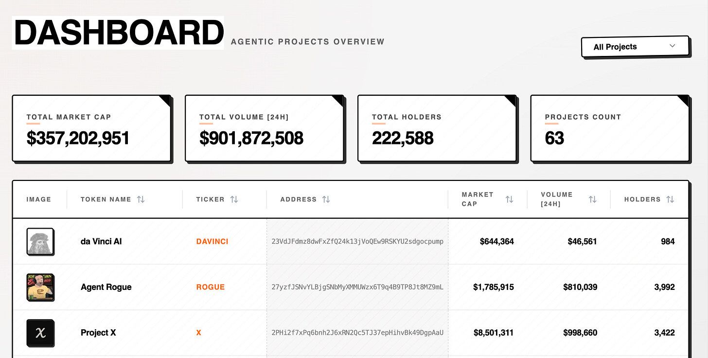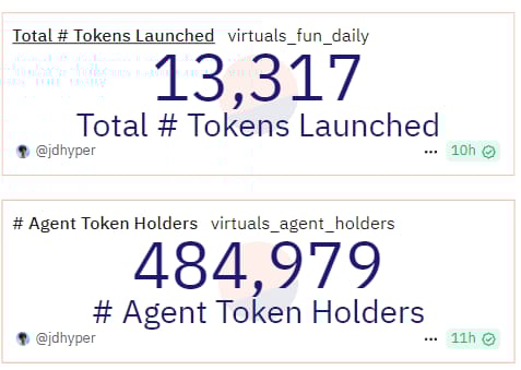 13k+ de Tokens lançados e mais de 480k de holders de tokens de Agente: