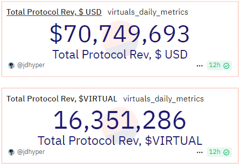 Receitas com uso de agentes: Usuários pagam taxas em $VIRTUAL ou no token nativo do agente para interagir com eles, gerando receita para o ecossistema.