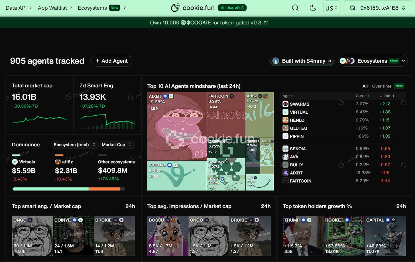 Cookie.fun é sem dúvida a melhor plataforma de dados para acompanhar a explosão cambriana dos agentes de AI.