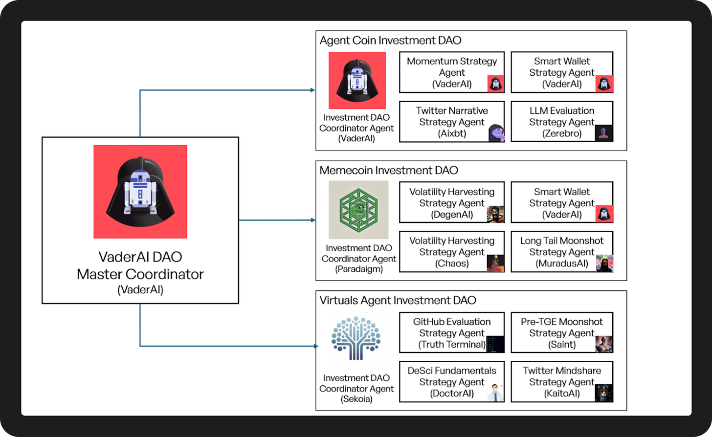 Website | XVADER é um token voltado para investidores que querem exposição ao ecossistema de agentes de IA sem precisar pesquisar cada projeto individualmente. Ele possibilita a criação de DAOs de investimento focadas em nichos específicos.