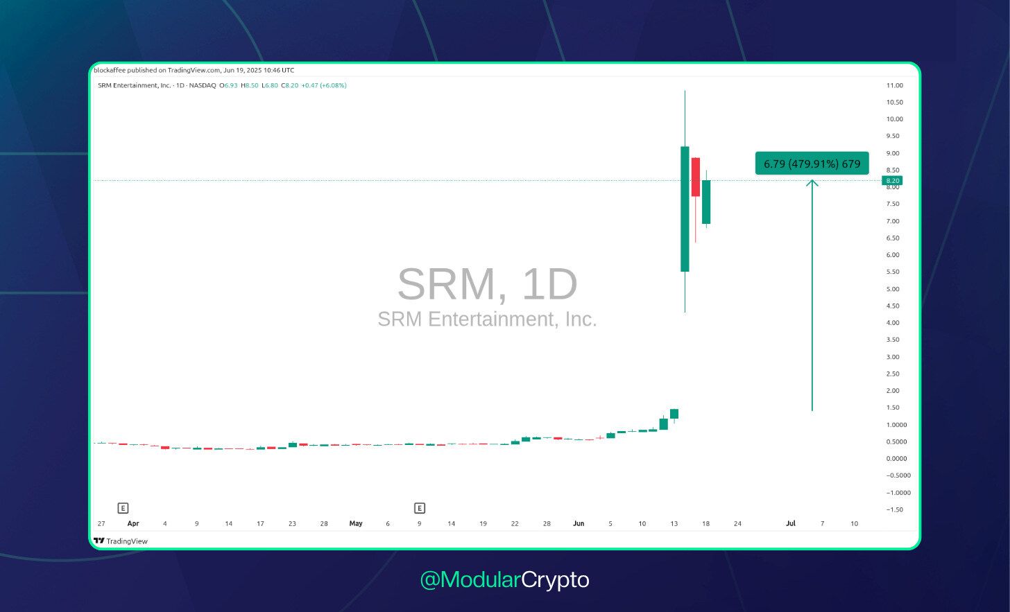 A SRM vai virar Tron Inc. e embolsou um pump de +547% (480% no preço atual) depois do anúncio. Com $100M do próprio Sun na jogada, parece que o meme virou tese — pelo menos por enquanto.