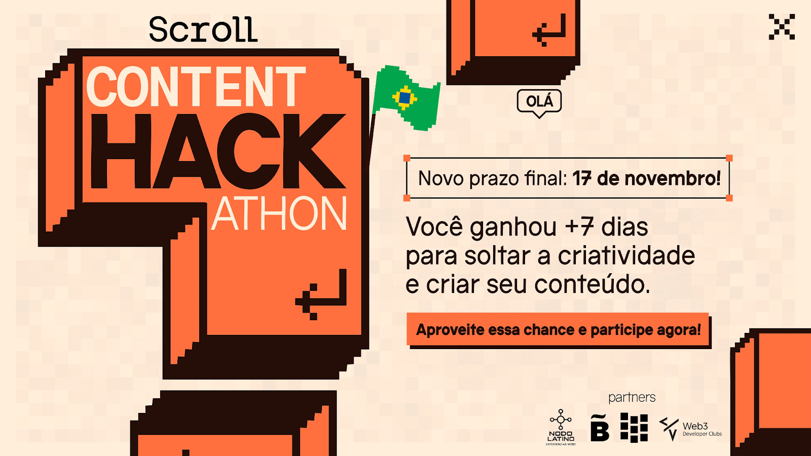 Se você ainda não participou, essa é a hora. Produza seu conteúdo, compartilhe sua visão sobre o ecossistema Scroll e envie sua inscrição antes do novo prazo.