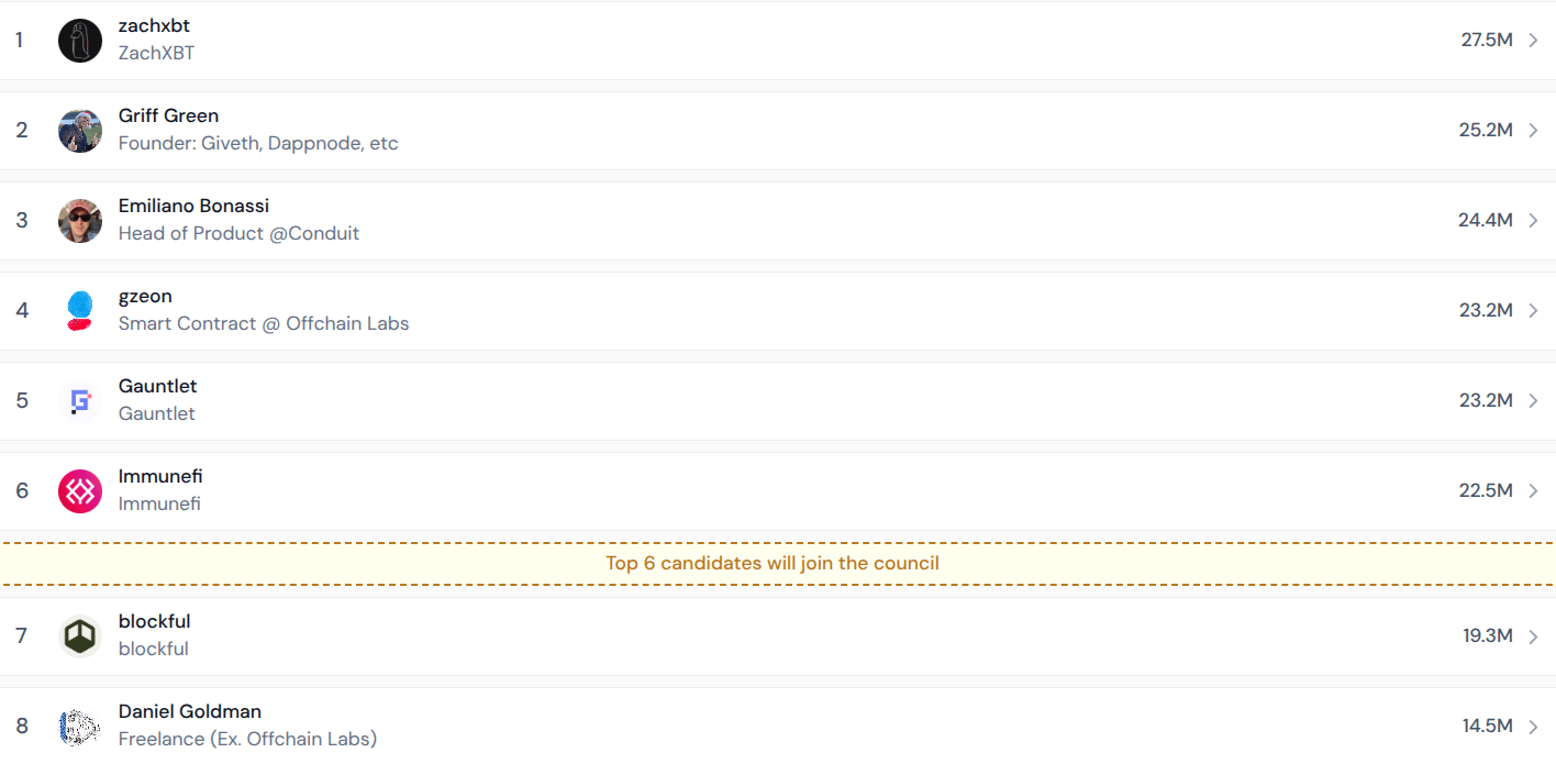 Qual seria o preço de um assento no conselho de DAOs? Essa foi a pergunta que a Blockful fez e acabou colocando em xeque a governança de uma das maiores DAOs do ecossistema. Como revelado pelo DL Research, um candidato à eleição do Conselho de Segurança comprou votos via LobbyFi por apenas 1.4 ETH (~US$ 5.400) — o suficiente para alcançar o 7º lugar, a poucos milhões de ARB de garantir uma vaga entre os seis eleitos. O candidato, a Blockful, afirmou ter feito o movimento como um “teste de estresse”, não para vencer, mas para provar o quão fácil seria influenciar o resultado de uma eleição com baixo custo econômico.
