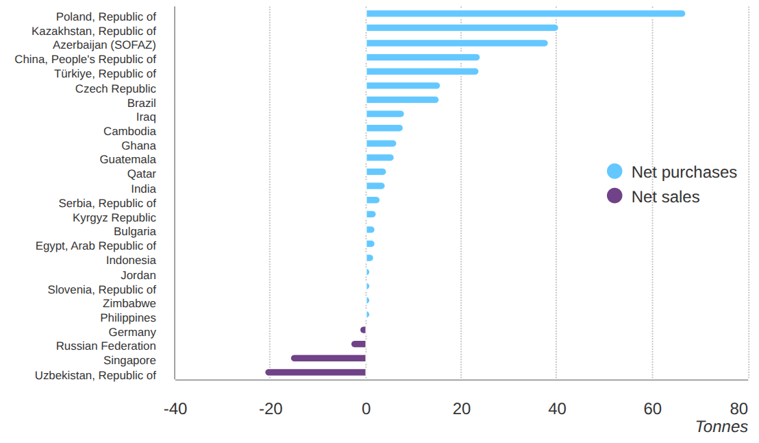 No terceiro trimestre, a demanda global de bancos centrais pelo metal subiu 28%, totalizando 220 toneladas. Brasil, República Tcheca, Turquia e Cazaquistão são alguns dos países que lideraram as compras, com destaque para a Polônia e a China no acumulado do ano. Mesmo com o ouro batendo recordes próximos de US$ 4.000 por onça, a busca pelo ativo segue firme — sinal de que, para as economias emergentes, o ouro voltou a ser sinônimo de soberania monetária. No acumulado de 2025, o Brasil já figura entre os dez maiores compradores do mundo.