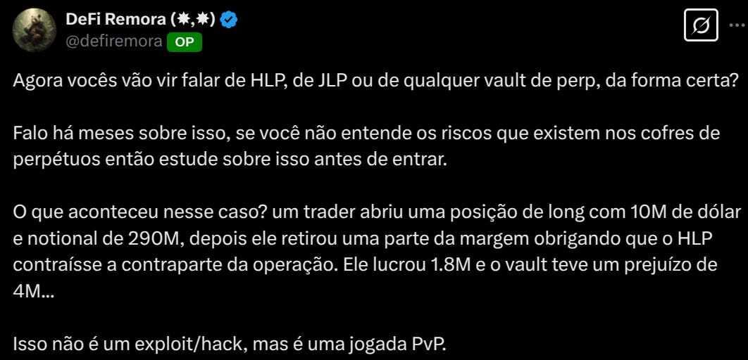 Um trader de alta alavancagem causou um prejuízo de US$ 4 milhões na Hyperliquid, manipulando o sistema e forçando liquidações. A DEX já anunciou medidas para mitigar riscos futuros. O episódio reacende discussões sobre a gestão de risco em plataformas descentralizadas.